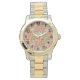 Este relógio feminino tem um design de diamantes Boho com diferentes padrões em uma paleta de cores Boho.