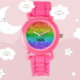 Relógio Boho Rainbow Glitter Glitter Glitter Meninas Rosa