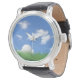 Bola de golfe branca em grama verde e fundo do céu de verão.