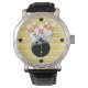 Greve! Bolas de boliche e pinos constituem este relógio de pulso divertido. Personalizável para que você possa adicionar seu próprio texto e alterar a cor de fundo. Faz um presente excelente!