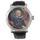 Nessa imagem eletrizante, o presidente Trump vestido de uniforme azul escuro com sotaques vermelhos vibrantes, está pronto para combate. Com um cinto vermelho significando sua proeza, ele atinge uma pose poderosa, punho cercado e olhar fixo. Atrás dele, um gigantesco dragão vermelho com chifres ameaçadores e dentes afiados emerge de uma tempestade de chamas e fumaça. Uma criatura menor parecida com dragão esconde-se ao fundo, aumentando a atmosfera intensa. A cena exude uma sensação de batalha iminente, com elementos de fantasia e proeza marcial se misturando sem parar para criar um visual dinâmico e emocionante.