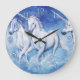 Relógio de unicórnios brancos e mágicos com números correspondentes