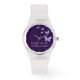 O Roxo Kaleidoscope Butterflies Motivational Watch tem o texto personalizado "Embrace Serenity with each Flutter!" e é parte da floreira Doodle Take a Dip! Coleção. Além disso, o design permite a personalização de cores seguindo o link de edição. Para obter mais ideias de design personalizadas, visite www.KBMD3signs.com. Para obter informações personalizadas sobre design ou assistência personalizada, contacte-nos em info@KBMD3signs.com.