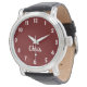 Relógio Borgonha, Nome, Banda de couro preto Vintage