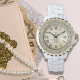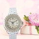 Relógio Branco de Noiva Glamouroso com Esmalte e R