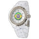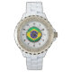 Relógio Brasil: Bandeira do Brasil, Rhinestone White Ename