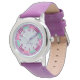 Projetado para a criança que está aprendendo a ler o tempo, o rosto do relógio tem uma clara discagem legível, e uma divertida cor legal de na moda. o fundo é uma prata metálica falsa para adicionar elegância. A hora e a cada 5 minutos são claramente escritas enquanto os 5 minutos no intervalo são indicados por um ponto para ajudar a criança a aprender a ler o tempo com facilidade. Personalizadas, personalizadas, meninas legal na moda moderna e moderna correia roxa de couro, caixa de aço inoxidável, relógio de pulso. Basta digitar o nome. Vá em frente crie um relógio personalizado maravilhoso para a menina da vida - filha, irmã, sobrinha, neta, afilhada, enteada. Faz um presente personalizado de excelente para aniversário, graduação, natal, feriados e muito mais.