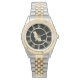 Um Ouro de silhueta de ouro brilhante Cachorro do Retriever é a característica no centro deste relógio elegante. A imagem do cão é formada por algarismos romanos dourados correspondentes, e colocada sobre um fundo preto dramático. Perfeito para quem ama um Ouro, e especialmente para alguém no mundo do Dog Show.