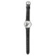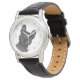 A ilustração original de um desenho animado de um cachorro francês Bulldog / cabeça de um cão francês de raça francesa, de cor preta, que está ligeiramente inclinada. A face do relógio é feita de linhas pretas mínimas, mas algumas delas estão escondidas atrás da imagem do cão.