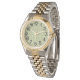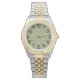 Este relógio feminino tem uma design de arte de três ovais divididos em dois retângulos muito finos em verde camo num campo de verde-claro. Quer o mesmo design com cores diferentes? Mensagem-me