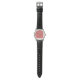 A textured red background with subtle vertical and horizontal lines, resembling a woven fabric. The pattern adds depth and a warm, inviting tone.