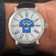 Design de camisa de futebol com camisa azul. Adicione o nome e o número da sua escolha. O rosto do relógio tem números romanos.