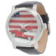 Carro de Chevy vermelho e branco de 1955 com uma bandeira americana.