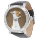 Greyhound Dog Cartoon sobre fundo de patas de chocolate.