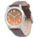 O relógio deste homem tem um design que desaparece que vai de marrom a laranja. Se você gosta do design, mas prefere cores diferentes, me mande mensagem.