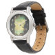 Um relógio com uma imagem de um paraíso oceânico. Uma entrada de caverna rochosa nas montanhas, olhando para um belo oceano com pássaros voando juntos.