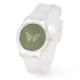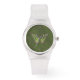 Este design apresenta uma borboleta de cauda engolida com marcas cor-de-rosa e verdes e uma tecelagem Celta nas asas e no corpo. Uma asa mostra a tecelagem no preto e a outra nas marcas rosa e verde. Este relógio está disponível numa variedade de cores, tamanhos e estilos, incluindo tamanhos para crianças e adultos.