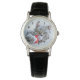 Um relógio com uma bela fotografia de Natal de uma cinza de gato a morder um chapéu vermelho de santa. Suas grandes patas fofinhas tornam esta foto muito encantadora.