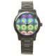 Círculos Coloridos Funky Spunky é uma exibição de cores vibrantes tão funky, tão cheios de energia que é como doce para os seus olhos. Em fileiras de várias cores de azul, amarelo, vermelho, rosa, verde e roxo em um fundo preto.