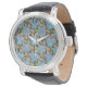 Relógio Clássico Floral Clássico Azul-Flor Elegante