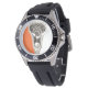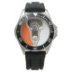 Relógio único de lacrosse com design de lax stick em fundo laranja. Para personalizar o texto de edição para adicionar nome ou iniciais para criar um relógio de manutenção legal.