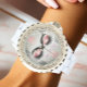 Mantenha-se na moda e a tempo com o Relógio Personalizado das Eyelashes Cinza Rosa. Apresentando sotaques brilhantes cor-de-rosa, detalhes ousados sobre as pestanas, e um design chic, este relógio é perfeito para técnicos de barra, artistas de barra ou qualquer pessoa que ame acessórios de vidro. Personalize-o com seu nome, nome comercial ou deixe-o vazio para uma aparência elegante e versátil. Um presente pensativo para aniversários, Dia do Namorados, ou qualquer ocasião especial, este relógio elegante faz uma declaração ousada!