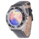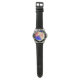 Um relógio com um fundo colorido.