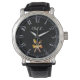 O ouro do Chef cruzou a colher e garfo Watch rosto exibindo números árabes antigos com horas e minutos. Números de luz sobre fundo preto .Elemento de tendência para cozinheiros masculinos .Pode alterar 1 . o texto " Chef L" 2 . a cor de fundo