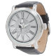 Presente para um construtor. O construtor está com materiais de construção à sua volta. Um relógio divertido para um construtor, fornecedor de materiais de construção ou trabalhador da construção. relógio do construtor de presentes de na moda. Numerais romanos negros e um rosto preto, branco e cinza. Monitoramento.