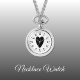Presente do Necklace Watch. Com um coração de amor negro e números de relógio em um fundo branco.