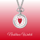 Presente do Necklace Watch. Com um coração de amor vermelho e números de relógio em um fundo branco.