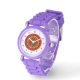Um design estilizado de corações em cores de chama circulando em um círculo com espirais no centro. O design é ligeiramente diferente nos relógios Glitter, uma vez que as mãos são mais difíceis de ver contra o design. Números adicionados e tamanho de imagem reduzido para melhor visibilidade. Todos os outros designs de vigilância não têm as horas marcadas.