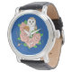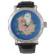 Relógio Coruja-Celeiro Azul Flores Rosa