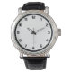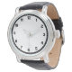 Um relógio preto de cor escura e sólida "Preto", masculino, com uma correia preta de couro preta. Este preto é preto puro. Clique em "Personalizar" para mudar de cor ou para adicionar um padrão ou design.