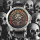 Apresentamos nosso **Relógio com Pulseira de Couro Preta Vintage Caveira Flamejante**. Este relógio inspirado no vintage apresenta uma pulseira de couro preta e um ousado desenho de caveira envolto em chamas ardentes na face do relógio. A caveira, simbolizando mortalidade e força, é cercada por chamas dinâmicas que adicionam uma borda feroz e ousada ao relógio. Ideal para aqueles que abraçam um espírito rebelde e expressão artística, este relógio combina charme vintage com estilo contemporâneo. A pulseira de couro preta oferece durabilidade e apelo clássico, tornando-a adequada para uso diário ou ocasiões especiais. Abrace sua individualidade e faça uma declaração com este distinto relógio. Acenda seu estilo com o Relógio com Pulseira de Couro Preta Vintage Caveira Flamejante, onde o charme