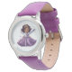 Crianças: relógio clássico de couro mostrado em roxo com uma impressão de princesa fofa. Escolha esta monitorização a partir de vários estilos. Personalize este relógio ou comprar como está. Imagem licenciada