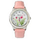 Crianças, nome, garota, botânica, flor silvestre, flores, design floral. Lindo relógio de ilustração de flores vermelhas.