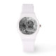 Fotografia branca e preta de um gatinho muito fofo com olhos azuis, agachado num chão de madeira, pronto para pular. Um presente de excelente para você ou para o amante de gatos em sua vida.