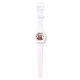 A watch with a cute drawing of a little kitten poking its head out of a gift box.