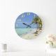 Negril Beach Jamaica 2011. praia de areia branca. Palmeira à direita. Uma bela vista ao longo da lendária praia do Negril. Os números amarelos e verdes se misturam na imagem, mas ainda mantêm visibilidade suficiente para que você tenha um relógio funcional e uma obra de arte. Excelente arte de escritório ou na cozinha, sala de estar ou sala de dormitório. Uma ideia de presente de excelente para o Natal. Uma lembrança de excelente para as últimas férias na Jamaica.
