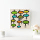 Médio século Moderno relógio de design da era espacial, formas geométricas em cores de verde limão, cor de laranja, cor de laranja.
