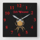 Uma imagem de um "Orb Weaver Spider" atirou na sua teia à noite. É brilhante e colorido num relógio de parede quadrado.