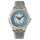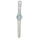 Uma simples margarida sobre um fundo azul. Ele me ama! Pulseiras de relógio reluzentes em vermelho, rosa ou prata.