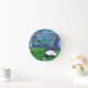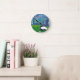 Uma pintura de aquarela original de Anne Ormsby enfeita esse relógio colorido.