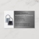 Dois cadeados em branco com painel de aço inoxidável, Cartão de visita profissional. Ideal para um Locksmith, Key Cutter / Cutting, Secure Company, Lock Smith, Home Security, Data Protection, Car / Auto Alarm Store, CCTV, sistemas de entrada, segurança e segurança e muitos outros profissionais de ferragem. O texto pode ser alterado em fonte, cor, tamanho e localização clicando no botão 'PERSONALIZAR TI'. Observe que nomes de empresas longos exigirão um redimensionamento. Obrigados de visita.