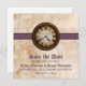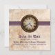 Esse relógio antigo Salve o aviso de data apresenta um cronômetro vintage centrado de forma destacada no topo de uma cadeia de esfera metálica e uma borda roxa listrada elegante. O olhar angustiado do fundo de textura de papel granulado completa a sensação antiquada deste design único. Esta ofensa, exceto o convite de data é perfeito para anunciar seu casamento inspirado em vintage ou steampunk. Fácil de personalizar, basta adicionar os detalhes do casamento nos espaços fornecidos. Clique em "Personalizar" para encontrar opções adicionais para personalizar este design.