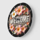 Saudações a cada momento com o calor dos trópicos! Este vibrante relógio de parede apresenta um sinal de 'Bem-vindo' rodeado por lindas flores tropicais. Perfeito por adicionar um toque de paraíso a qualquer sala, este relógio faz uma deliciosa peça de declaração e um presente de excelente para amantes de flores.