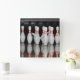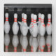 Um relógio com uma foto de pinos de boliche.