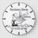 Relógio do escritório. Relógio de encanador. O relógio da parede dos serviços de canalização com a sua escolha de nome de empresa e número de telefone. Relógio do engenheiro de aquecimento.