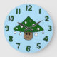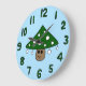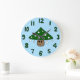 Um relógio com um cogumelo festivo e números verdes correspondentes.